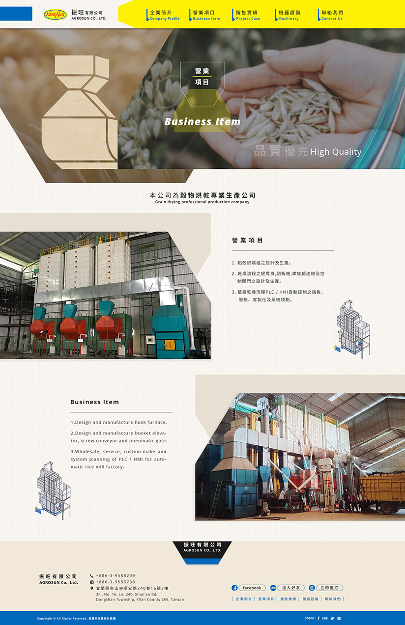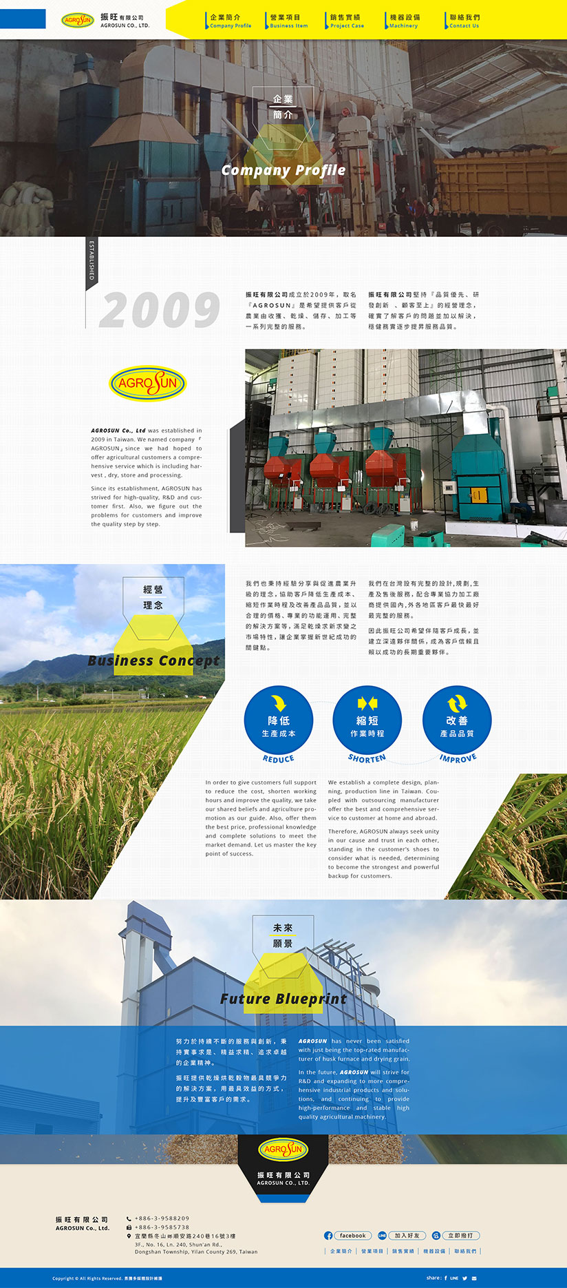 客戶主要經營項目為農業生產器具,主要訴求為中英文對照,頁面簡潔順暢。