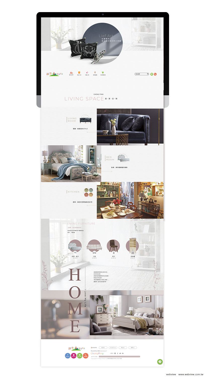 誠萍生活家具風格屬於法式鄉村,以淺色彩作為網站的主色,以便襯托家具之質感與獨特性。