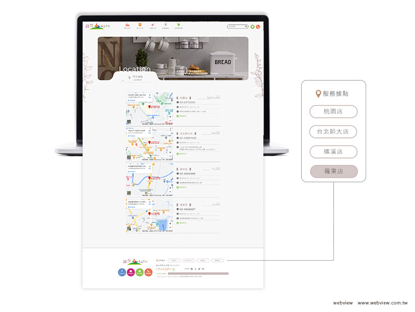 內嵌多家門市GOOGLE地圖,另在版腳處設門市據點之超連結。