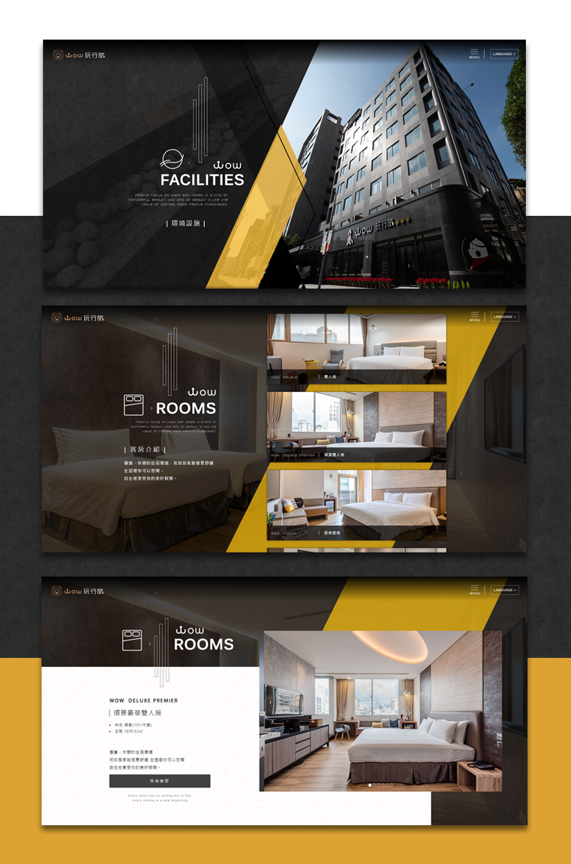 為了讓使用者能在網站上留下第一印象,架構規畫以飯店簡介的畫面佔據為多,以圖文方式呈現,利用畫面與文字互相搭配產生情境,讓使用者在流覽網站同時便能感受入住時的感受。