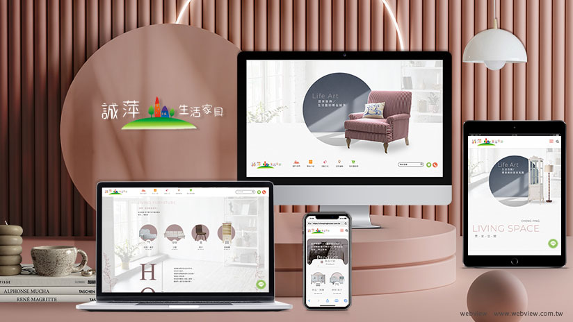 誠萍生活家具風格屬於法式鄉村,以淺色彩作為網站的主色,以便襯托家具之質感與獨特性。