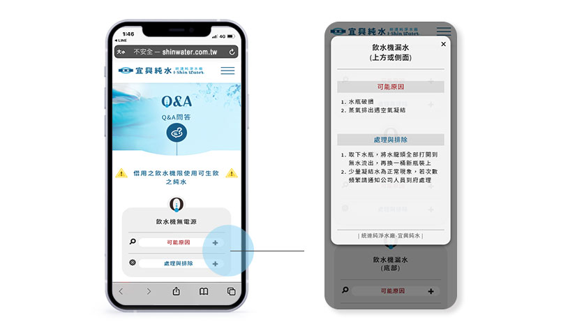避免在使用智慧型裝置時頁面過長,導致不易閱讀,故用彈跳視窗,便利且易操作。
