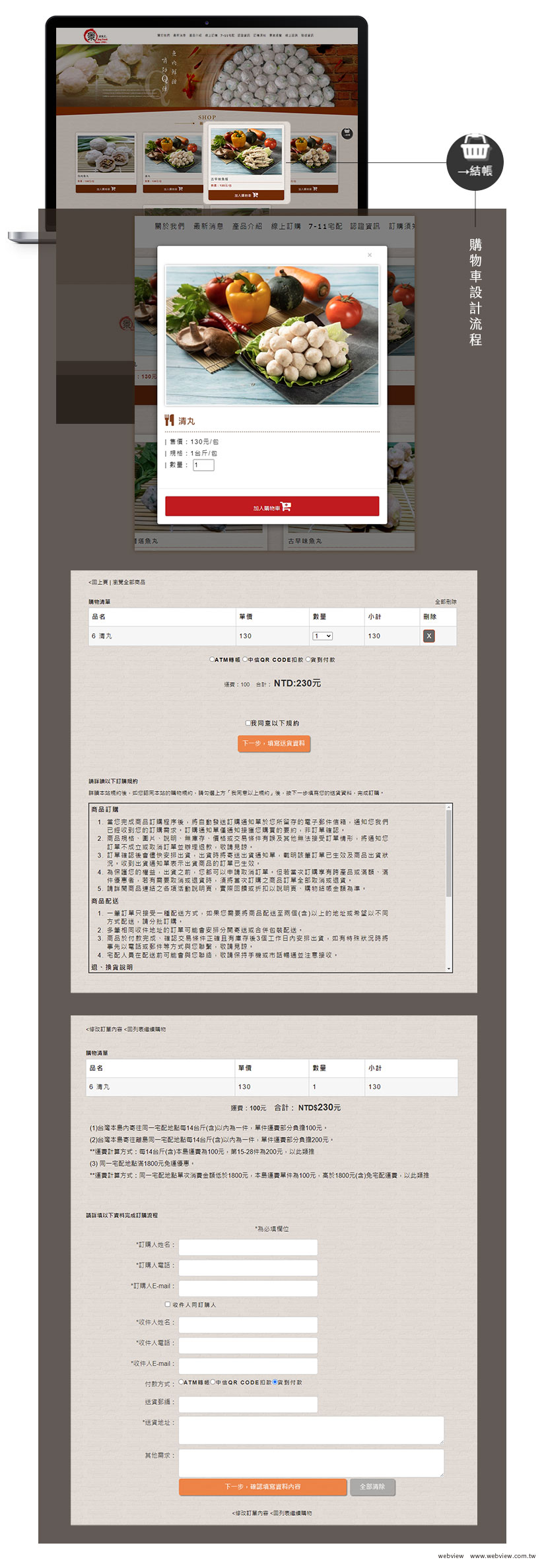 在前置作業時便會與客戶商討購物車細節流程,再依據商品上架多寡做整合性的設計。
