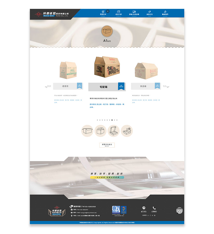 ⊙產品頁面因有多項產品展示,利用前後半透明左右滑動導覽。