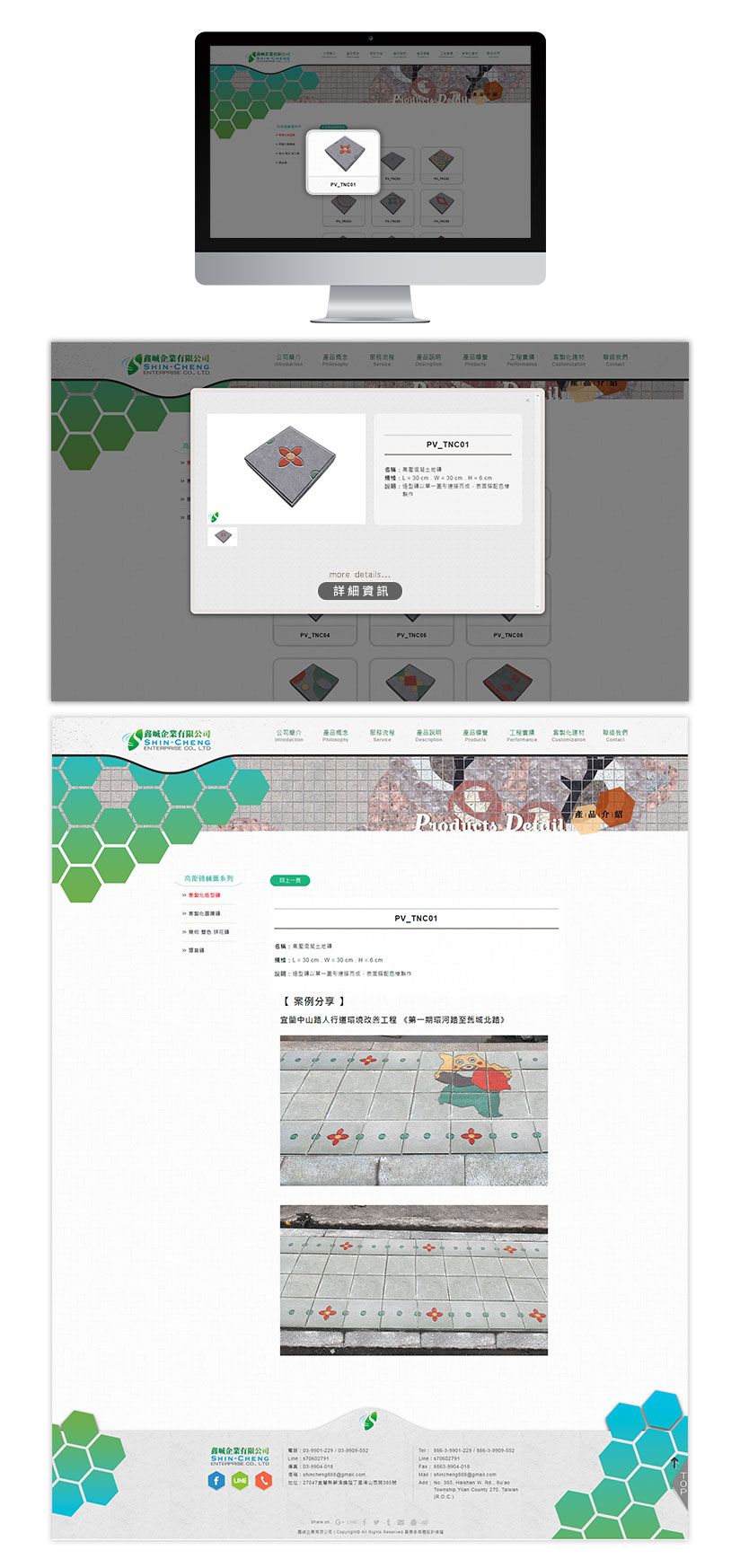 ⊙ 商品多樣分類,主要在單一產品使用彈跳視窗簡略說明概要,另用後台圖文編輯器讓業者自行編輯。
