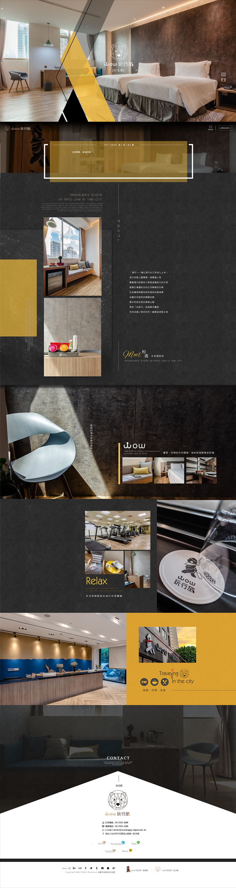 首頁以黑色、琥珀色的交縱帶入畫面,如同在生活的繁忙中,需要適時的調節讓自已放鬆,玩樂一下,感受在旅行中的歡樂。